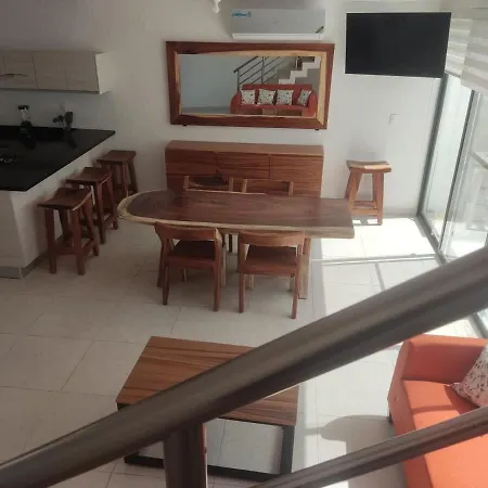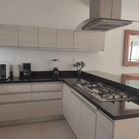 Ez a Moderna Villa 3 Pisos Condominio Playa Del Carmen mikrohullámú sütővel, kávé/tea készítővel és hűtővel felszerelt teljesen felszerelt konyhát kínál. - ❓